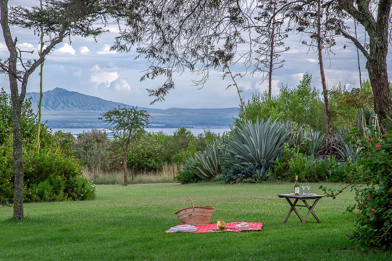 Naivasha House has a gorgeous pool, which is built into the low side of a small rise. From the cottages, the pool can be accessed by a short stair case, and it has shady areas built into the rise making it easy to relax and enjoy the view of the grounds that extend from its far side. On the opposite end of the home, there is a full size, well-maintained tennis court. The home’s walled garden space is perfect for a functioning vegetable patch, currently outfitted with sheltering netting. Enjoy the property’s best views from a small hill that has been landscaped with a stone stairway and small terrace at the top. From here, you can see clearly out over the lake and Mt. Longonot, making it the perfect space to enjoy your morning coffee, afternoon tea or evening sundowner.